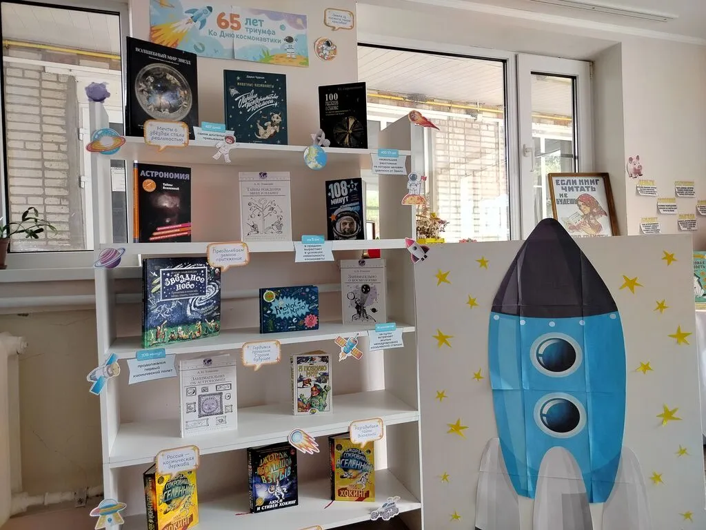Здесь вы найдете книги о звездах и планетах, истории о великих космонавтах, а также красочные иллюстрации и интересные факты о Вселенной.